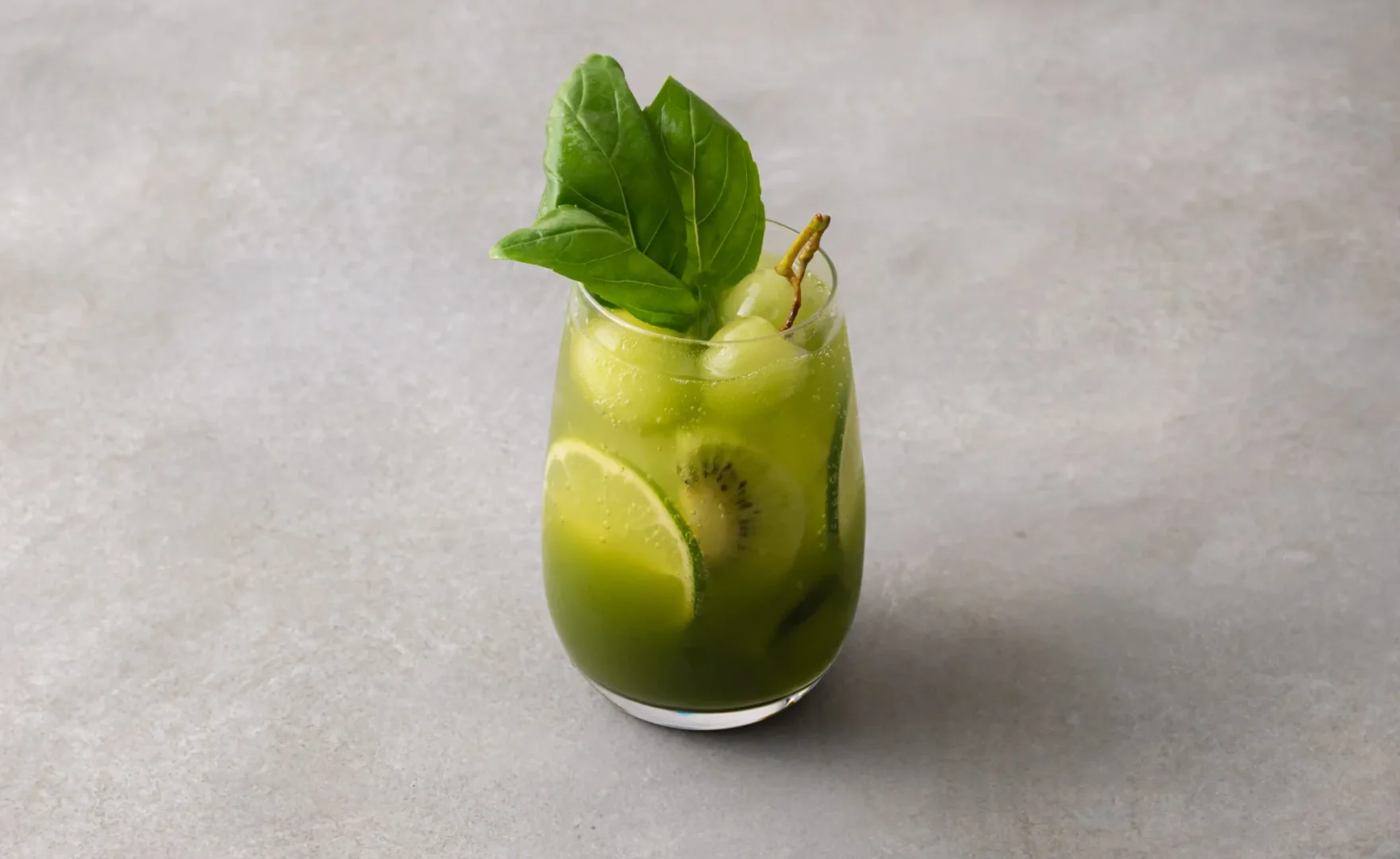 - グレープ、キウイ、ライム、バジルを飾ります。