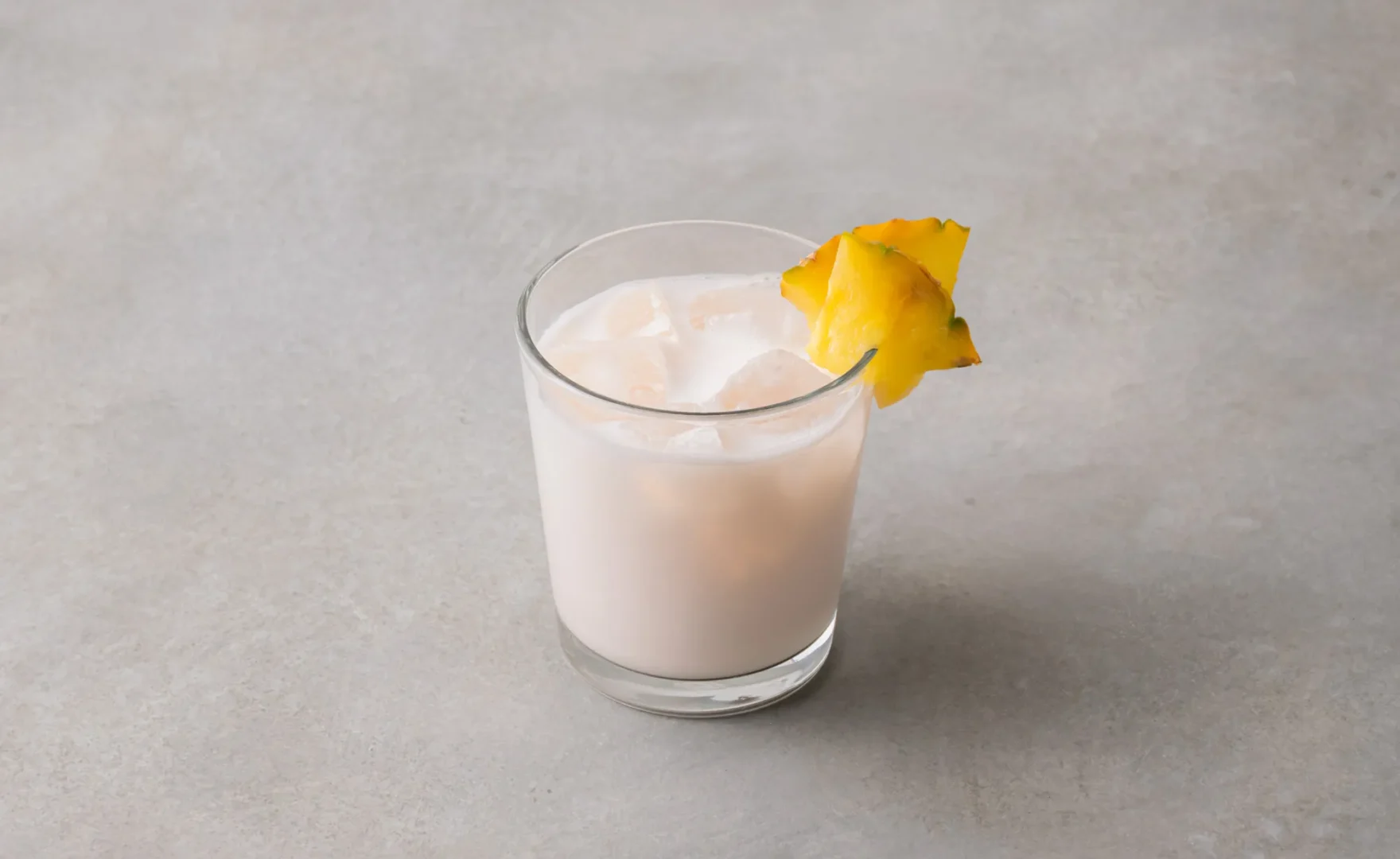 - 皮つきパイナップルをグラスの淵に飾ります。