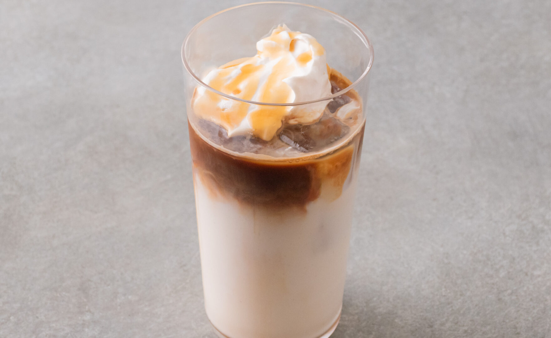 - ソルテッドキャラメルクリームを乗せ、キャラメルソースをかけます。