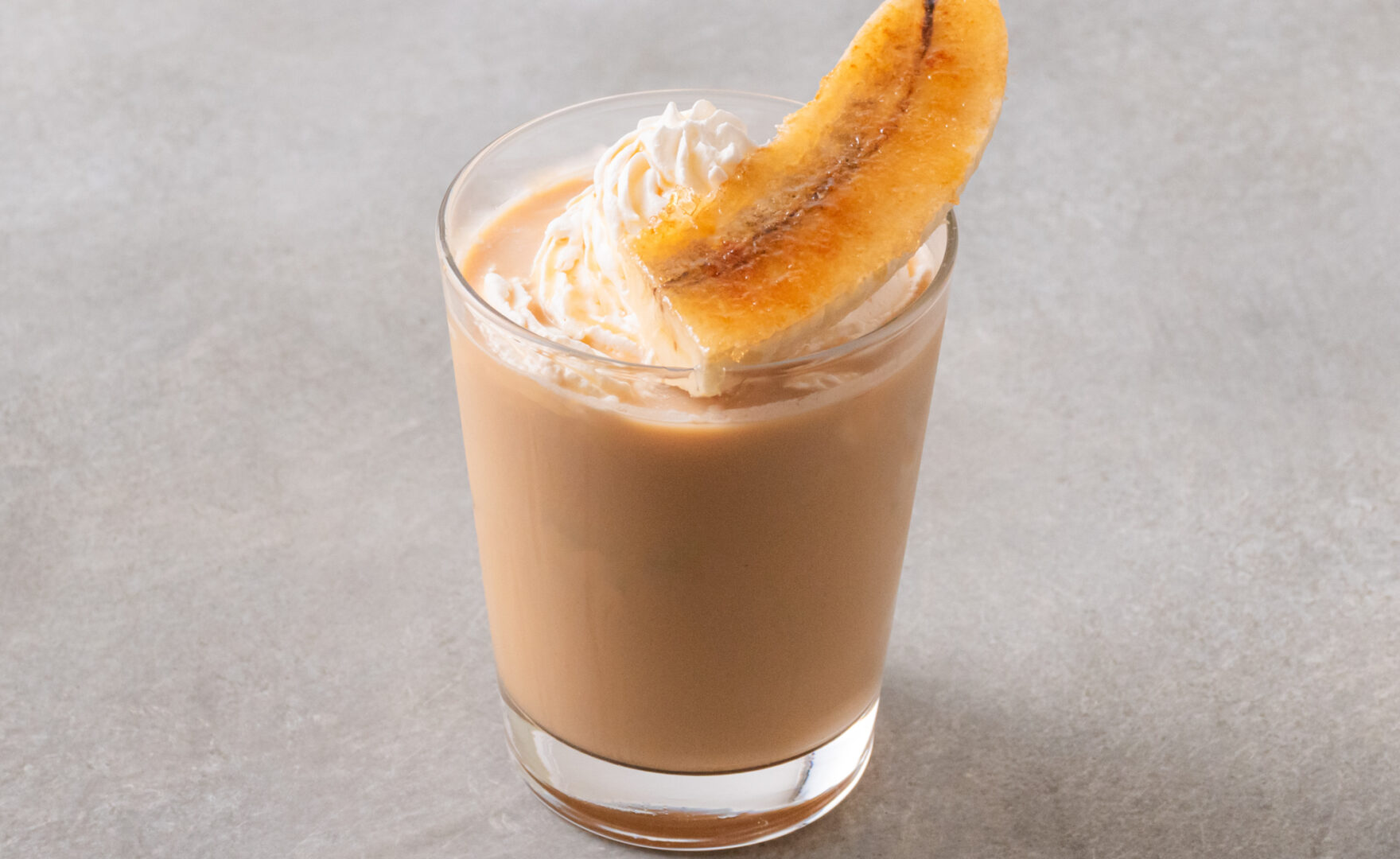 - グラスに《Giffard》バナナシロップ、牛乳、エスプレッソを入れ、混ぜます。