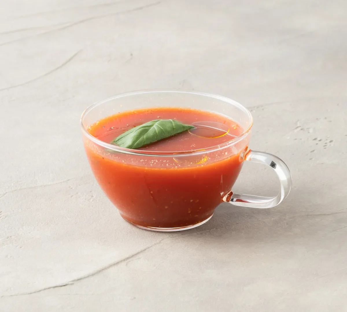1. カップに《Giffard》バジルシロップ、顆粒コンソメ、粒こしょうを入れる。